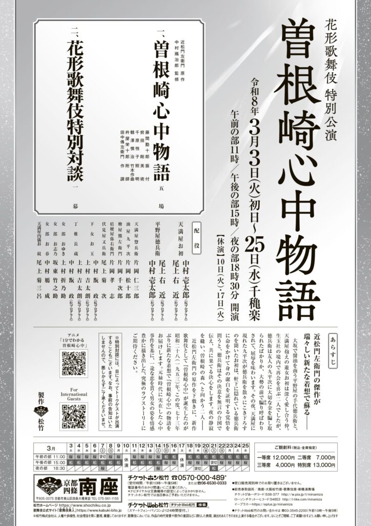A-train生が南座・花形歌舞伎 特別公演「曽根崎心中物語」に出演by AtrainStaffに お知らせon 投稿日: 2026年2月27日2026年2月27日 2026.2.27A-train プラス生の小池雄大が南座・花形歌舞伎 特別公演『曽根崎心中物語』」に出演いたします!! 関連サイト:https://www.kabuki-bito.jp/theaters/kyoto/play/952#cast